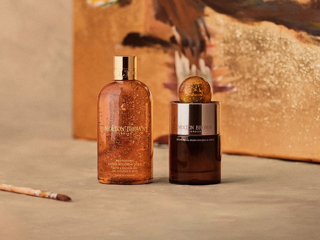 ロンドンを拠点に活躍するマルチディシプリナリー・アーティスト、カリマ・ハッサンが、モルトンブラウンのアイコンフレグランス「ウード・アコード&ゴールド」を、絵画と詩《The Golden Bridge》で表現し、芸術の領域へと昇華しました。
