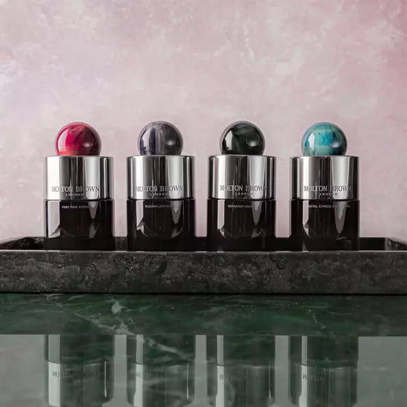 ここでは、モルトンブラウンの社内フレグランスエキスパートであるマリー・エドモンドが、上手な香りのつけ方やボトルの保管場所まで、5つのよくある質問にお答えします。